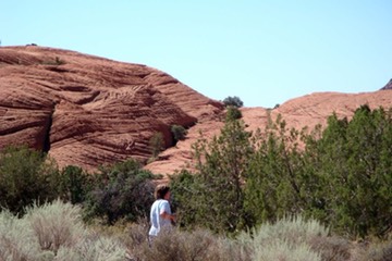SUE LOOKING FOR BIRDS AMONG the FEW TREES